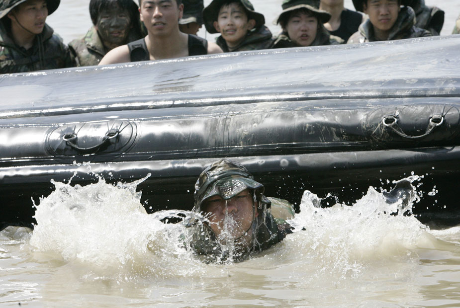 當(dāng)?shù)貢r(shí)間7月30日,在首爾的美軍基地參加軍訓(xùn)夏令營的韓國數(shù)百名學(xué)生來到金浦進(jìn)行了泥地訓(xùn)練,場(chǎng)面十分激烈甚至殘酷。