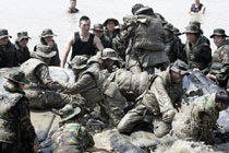當地時間7月30日,在首爾的美軍基地參加軍訓夏令營的韓國數百名學生來到金浦進行了泥地訓練,場面十分激烈甚至殘酷。