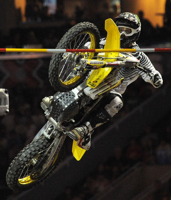 當地時間7月30日,美國洛杉磯舉行了一場極限摩托大賽,各路好手上演了摩托車跨越高桿的精彩表演。