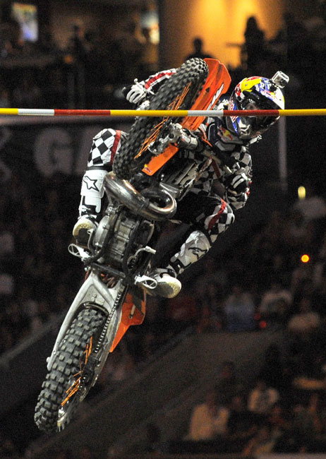 當地時間7月30日,美國洛杉磯舉行了一場極限摩托大賽,各路好手上演了摩托車跨越高桿的精彩表演。