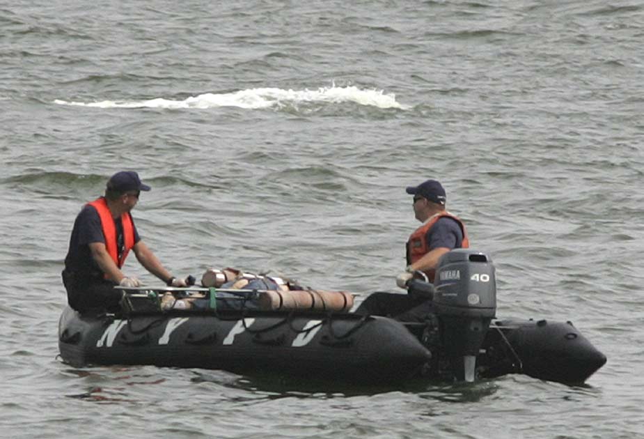 8月8日,紐約市曼哈頓西側(cè)的哈德遜河上空,一架觀光直升飛機(jī)和一架小型飛機(jī)相撞,兩飛機(jī)雙雙墜入河中。據(jù)稱觀光直升飛機(jī)上載有五名意大利游客和一名飛行員,而小型飛機(jī)上則有三人。圖為救援人員在現(xiàn)場(chǎng)打撈。