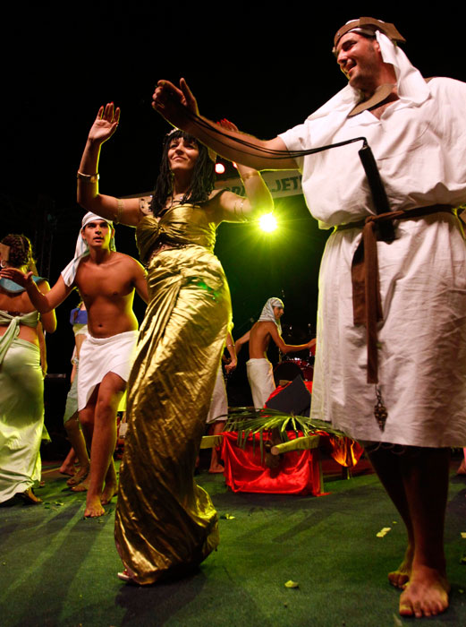 圖為市民穿上演出服裝參加狂歡節進行表演。