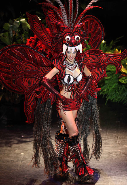 圖為巴拿馬小姐黛安娜演繹民族服飾。