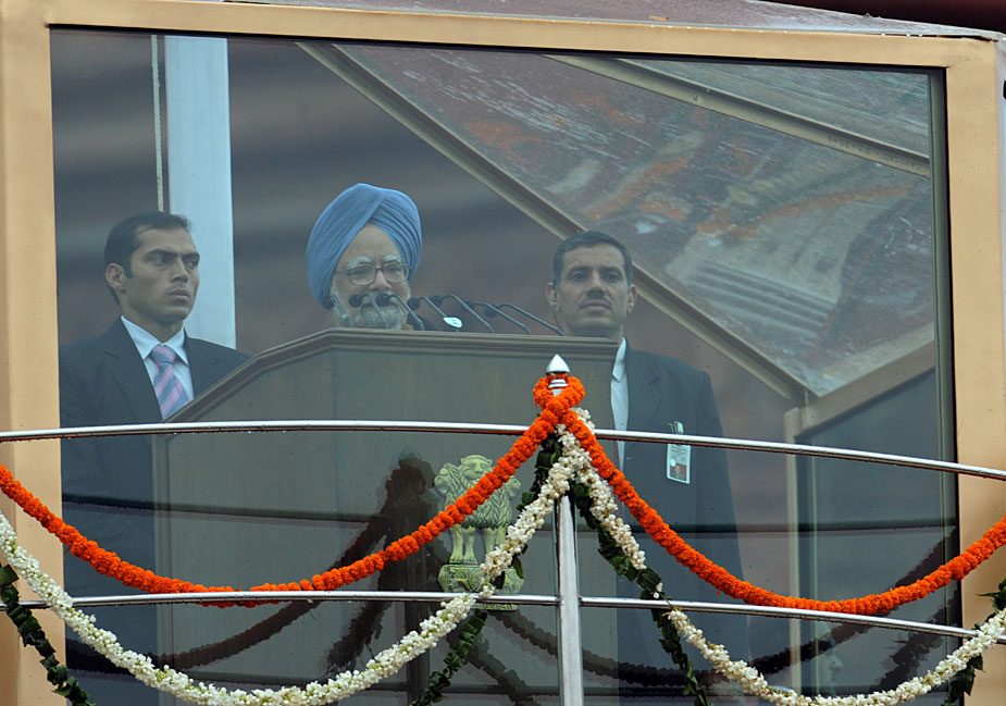圖為印度總理辛格在慶祝儀式上發表講話。