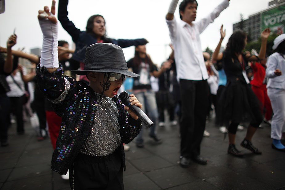 8月29日,逾萬(wàn)名墨西哥人在墨西哥城廣場(chǎng)同時(shí)跳舞,用以紀(jì)念邁克爾·杰克遜第51個(gè)“生日”,同時(shí)也試圖打破同時(shí)跳舞人數(shù)最的吉尼斯世界紀(jì)錄。圖片來(lái)源:中國(guó)新聞網(wǎng)