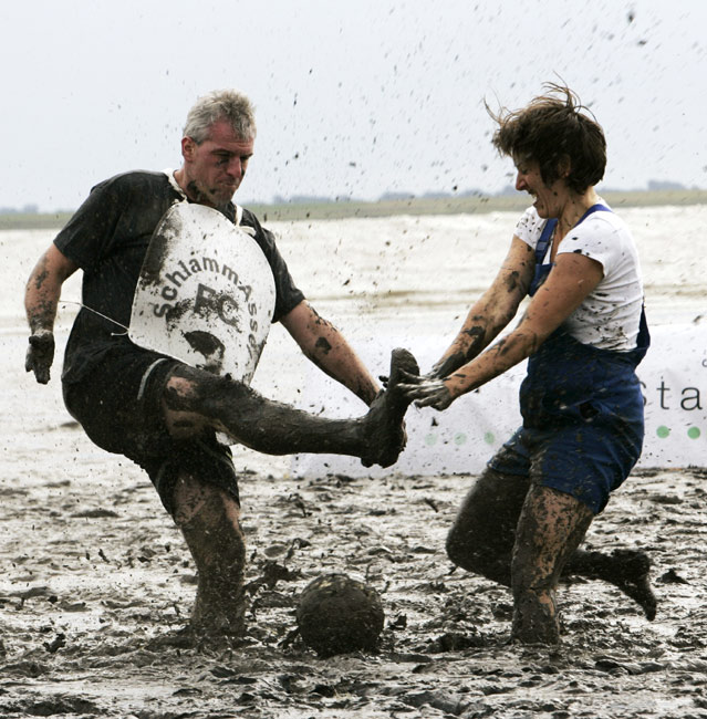 當地時間8月30日,德國北部海邊小鎮Brunsbuettel的泥灘上進行一場別開生面的泥地足球賽。男女“球員”混合在一起,泥地中盡情撒野,享受著不一樣的樂趣。