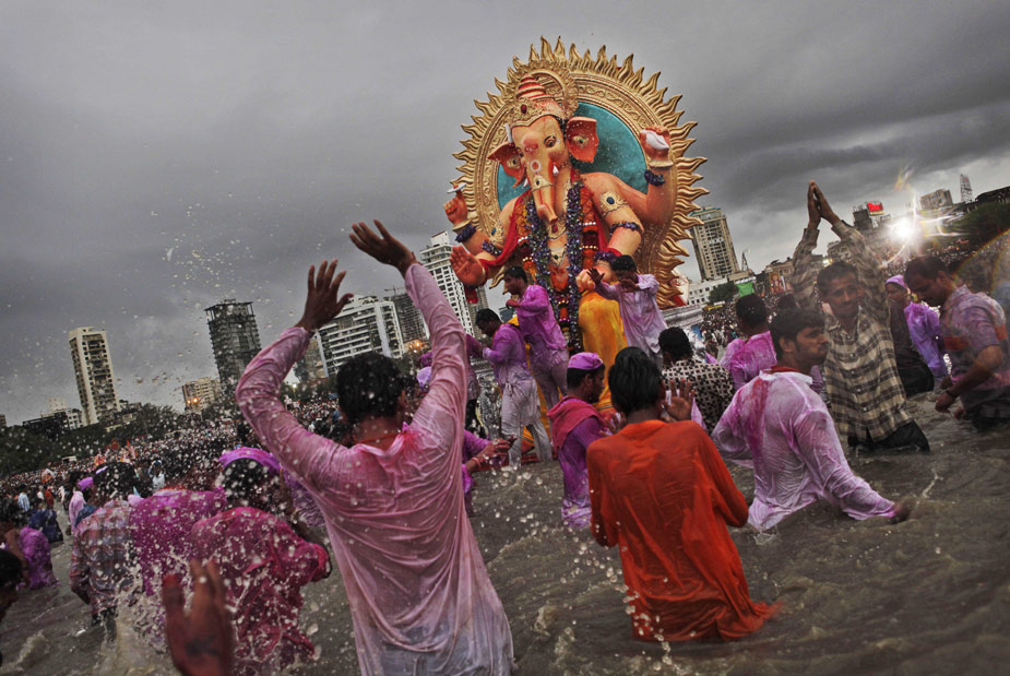 9月3日,印度各地的印度教教徒舉行盛大的儀式慶祝象頭神節。象頭神節是印度重要的宗教節日之一。圖片來源:中國新聞網
