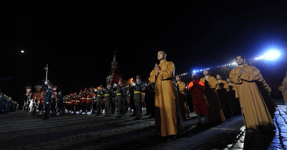 9月4日晚,在俄羅斯莫斯科紅場(chǎng)舉行的俄羅斯國(guó)際軍樂(lè)節(jié)開(kāi)幕前夕的總彩排上,中國(guó)少林武僧亮相并進(jìn)行了精彩表演。
