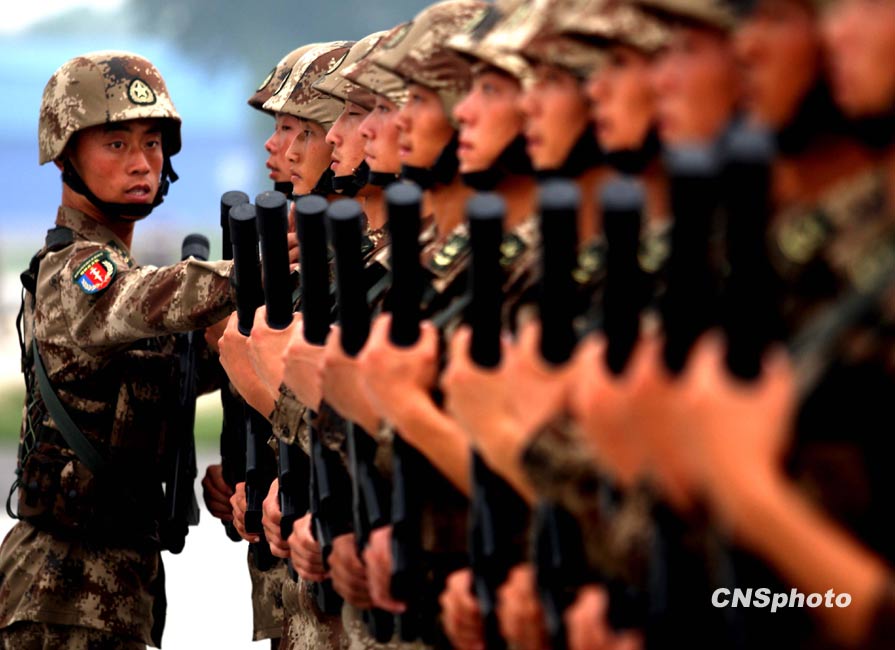 9月3日,北京郊區閱兵村的官兵正在加緊訓練。中新社發 宋吉河 攝