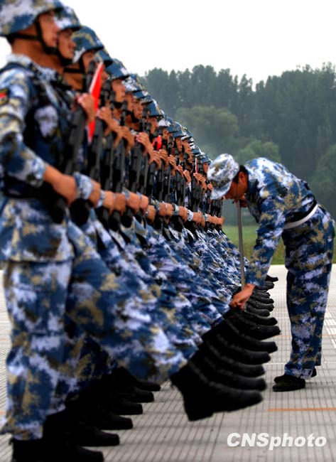 9月3日,北京郊區閱兵村的官兵正在加緊訓練。中新社發 宋吉河 攝