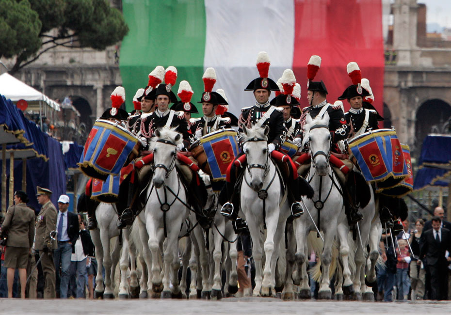 2009年6月2日,意大利首都羅馬舉行一年一度的閱兵式,慶祝意大利共和國(guó)成立63周年。閱兵儀式按照慣例在羅馬市中心帝國(guó)廣場(chǎng)大道上舉行,來(lái)自意大利三軍各兵種、憲兵和警察部隊(duì)、各軍事院校的6400名官兵依次列隊(duì)接受了檢閱。
