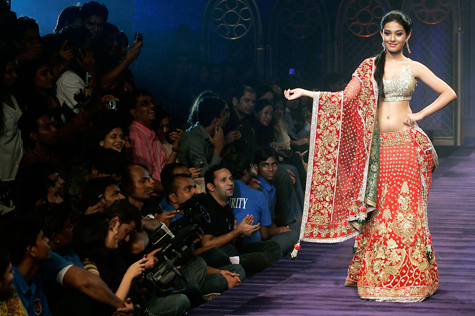 9月13日,主題名為“地球時裝”的時裝周在印度加爾各答開幕,時裝周上模特們展示了設計師馬尼什·馬爾霍特拉的作品。來源:中國新聞網