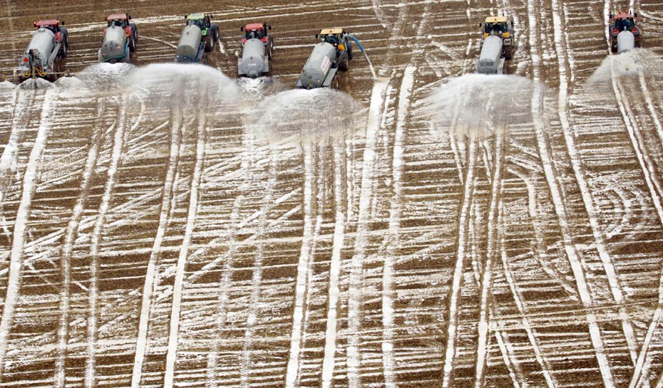 16日,比利時奶農向地里傾倒了3百萬升鮮牛奶做“農肥”,抗議奶價暴跌。奶農們認為,提高牛奶生產配額造成歐盟市場上奶制品供大于求,進而引發價格暴跌。來源:中國新聞網