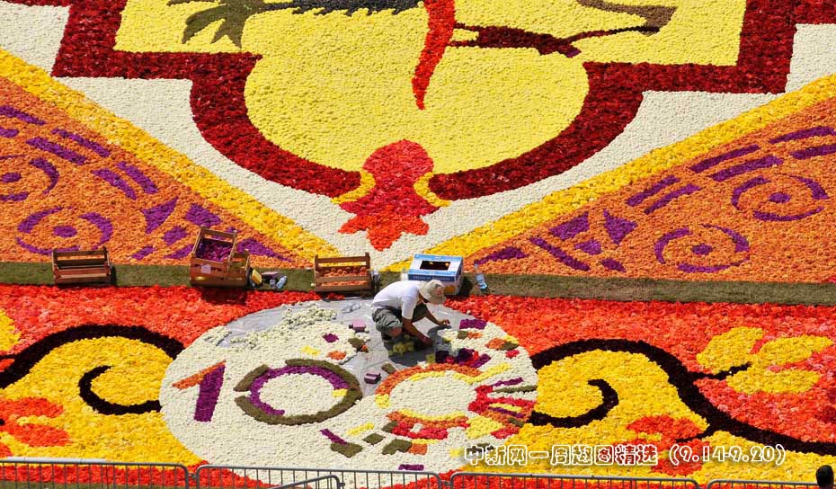 9月16日,在以色列特拉維夫的拉賓廣場(chǎng),由100多名志愿者用50萬朵鮮花鋪成了一張巨型地毯,用以紀(jì)念特拉維夫建城100周年。圖片來源:中國(guó)新聞網(wǎng)