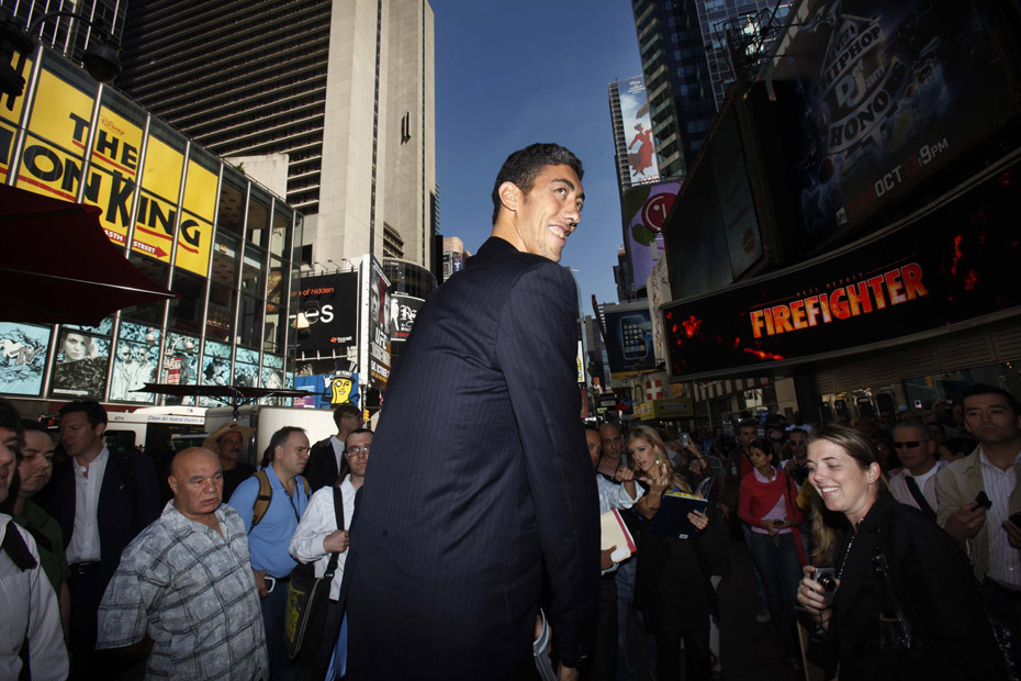9月21日,身高2.465米的土耳其人柯森在美國紐約拿到了“世界第一高人”的吉尼斯世界紀錄證書。這項紀錄的上一位保持者是身高2.36米中國人鮑喜順。來源:中國新聞網