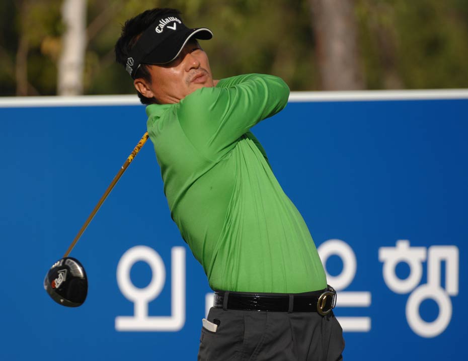 2009“韓國KEB銀行”中韓職業高爾夫球巡回賽韓國站于今天在韓國OSTAR高爾夫球俱樂部正式開桿,有47名球員代表中國參賽。圖為選手們上場第一天,揮桿開打的場面。