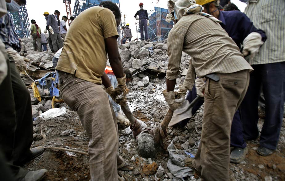印度中部一座在建電廠的巨型煙囪23日下午發生倒塌,目前估計已有至少100人罹難。圖片來源:中國新聞網