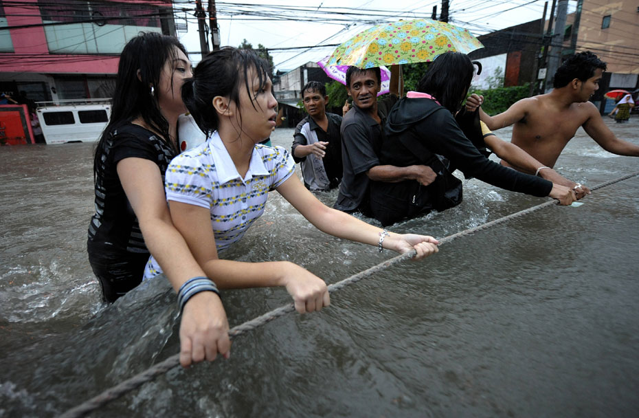 “凱薩娜”襲菲 馬尼拉大水淹城