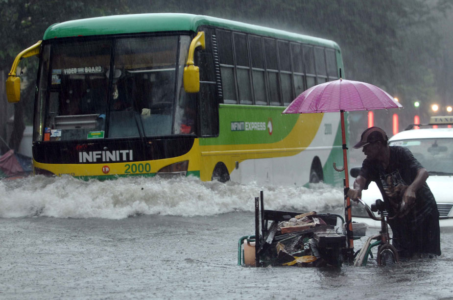熱帶風暴“凱薩娜”26日吹襲菲律賓北部呂宋島,首都大馬尼拉地區出現逾42年來最嚴重水災,幾乎變成澤國。圖片來源:中國新聞網