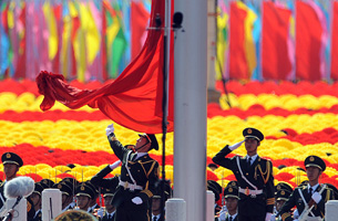 國慶60周年閱兵10月1日上午在天安門廣場成功舉行。由人民解放軍、武裝警察部隊和民兵預備役部隊8000余名官兵組成的受閱方陣接受檢閱。