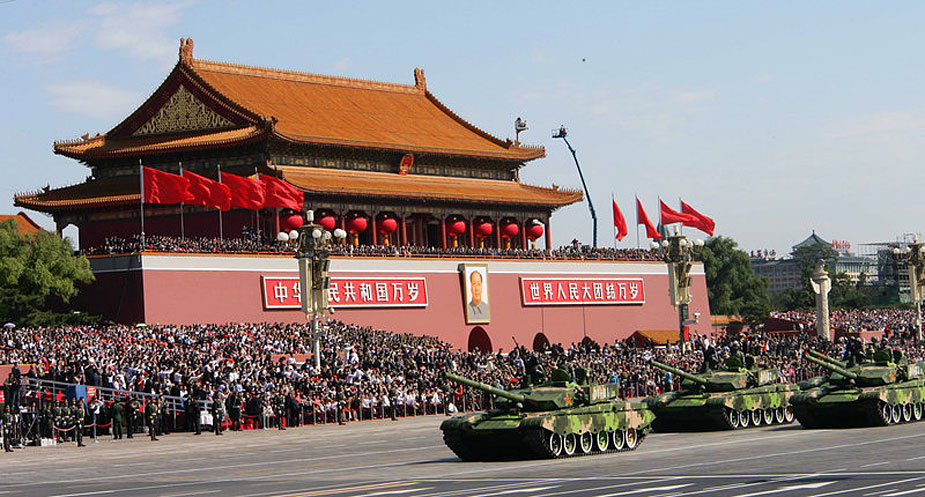 2009年10月1日,首都各界慶祝中華人民共和國成立60周年大會在北京天安門廣場隆重舉行。這是坦克第一方隊正在通過天安門廣場。