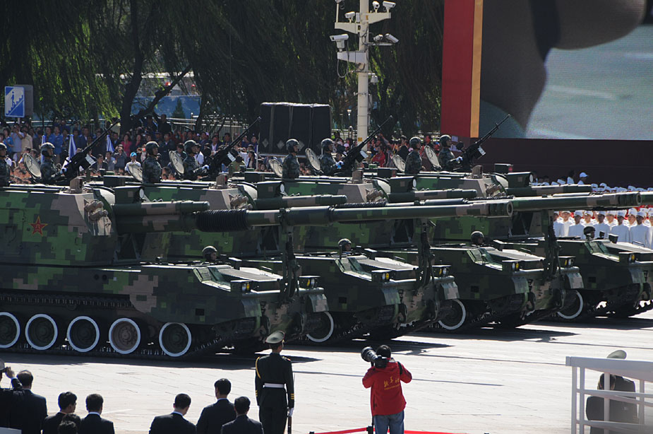 2009年10月1日,中華人民共和國成立60周年慶祝大會在北京天安門廣場舉行。圖為履帶自行加榴炮方隊。中新網記者 攝