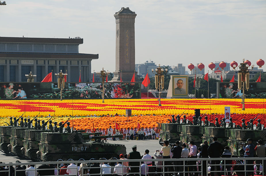 2009年10月1日,中華人民共和國成立60周年慶祝大會在北京天安門廣場舉行。圖為履帶自行榴彈炮方隊。中新網記者 攝