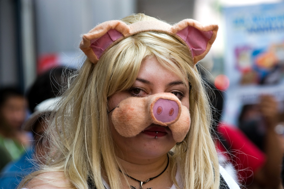 10月4日,在墨西哥首都墨西哥城,參加世界動(dòng)物日活動(dòng)的人們頭帶面具,手舉圖片,呼吁人們關(guān)注動(dòng)物權(quán)益。來源:中國新聞網(wǎng)