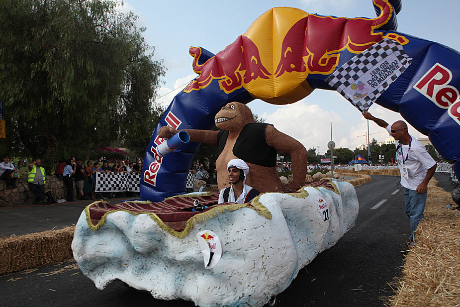 50輛“肥皂盒車”10月7日參加了耶路撒冷舉行的“肥皂盒車”趣味競(jìng)賽。賽道設(shè)置在市中心一條大街的一段斜坡上,比賽者駕駛各種千奇百怪的賽車從起點(diǎn)一路滑下。圖片來源:中國新聞網(wǎng)