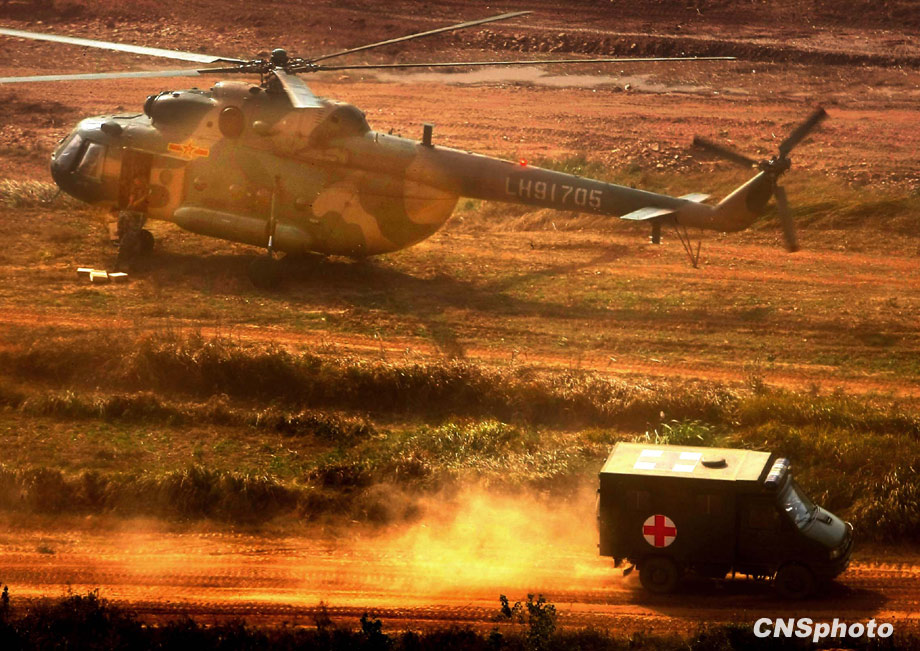 解放軍“前鋒-二00九A”演習(xí),二十二日在濟南軍區(qū)某合同戰(zhàn)術(shù)訓(xùn)練基地進行陸空聯(lián)合火力打擊實兵實彈演練后落幕。參演的陸空兩個軍種配合默契,體現(xiàn)了解放軍推進聯(lián)合訓(xùn)練的成果。