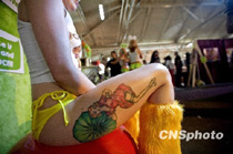 2009年10月23日,澳大利亞悉尼,來(lái)自紐約的全男班惹笑芭蕾舞團(tuán)The Trocks在噴泉邊起舞。高超的足尖技巧,優(yōu)美的芭蕾舞姿,加上怪異的動(dòng)作滑稽的表情,這些美國(guó)男子芭蕾演員們用一種另類的表現(xiàn)力顛覆了人們心中優(yōu)雅高貴的印象,讓觀眾欣賞傳統(tǒng)以外的男扮女裝芭蕾舞表演。