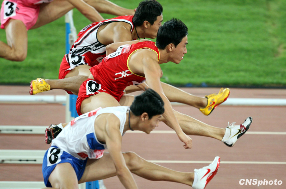 10月24日晚,全運會110米欄預賽在濟南奧體中心舉行,“飛人”劉翔以13秒75成績輕松晉級決賽。來源:中國新聞網