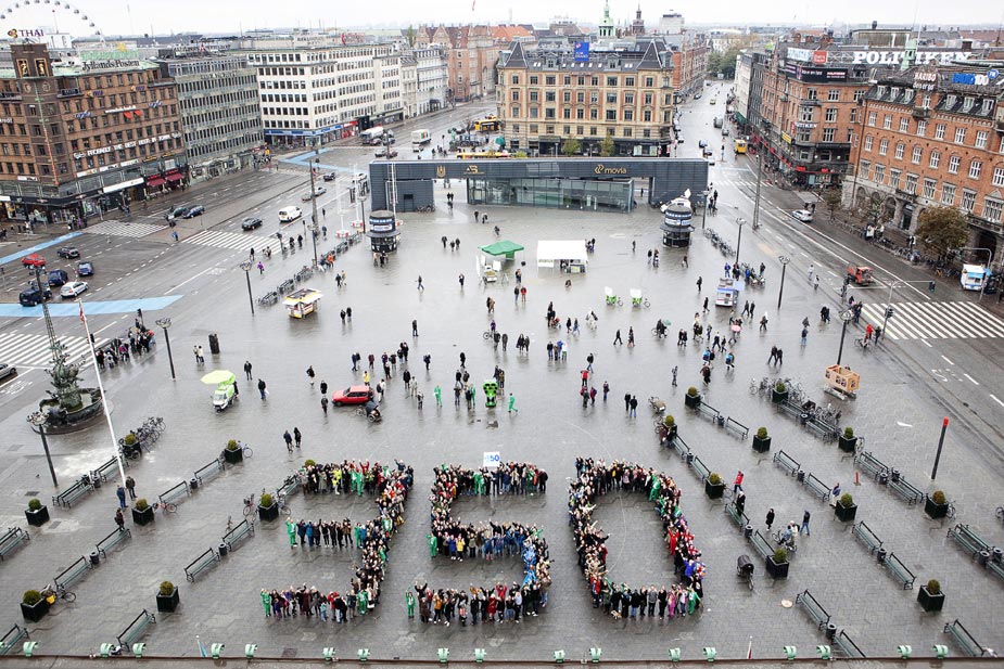 2009年10月24日,當(dāng)日是350全球應(yīng)對氣候變化行動日,世界各地的民眾紛紛用自己的方式來表示對全球氣候變化的關(guān)注和擔(dān)憂。圖為丹麥民眾組織的活動。