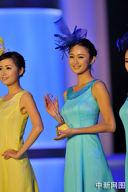 10月31日晚,“2009中華小姐環球大賽”總決賽在上海國際體操中心隆重上演,最終來自北京的田桐、上海的朱盈菲和陜西的李若凝分別摘得本屆大賽的冠亞季軍。中新網記者 金碩 攝