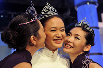 10月31日晚,“2009中華小姐環(huán)球大賽”總決賽上,12名入圍總決賽的佳麗身著迷你裙大秀性感爵士舞。中新網(wǎng)記者 金碩 攝