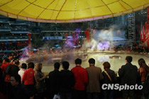 圖為總決賽現(xiàn)場的火爆舞蹈演出。