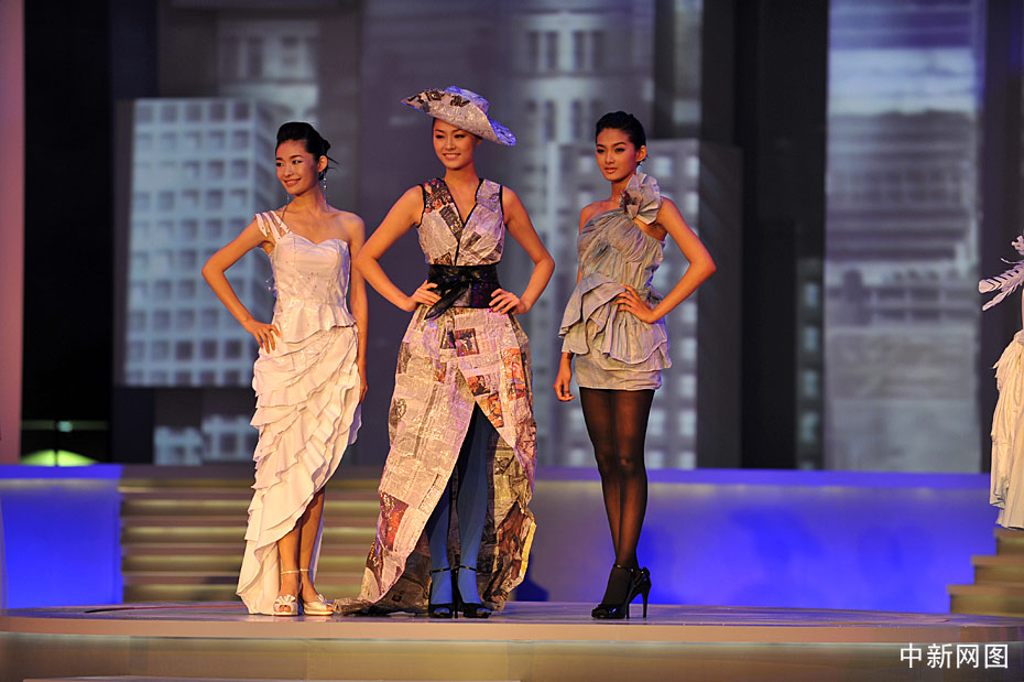 10月31日晚,“2009中華小姐環(huán)球大賽”總決賽上,12名入圍總決賽的佳麗身著各式服裝展現(xiàn)曼妙身姿,此外大賽還設(shè)計了一套“廢品服裝”呼吁環(huán)境保護(hù)。中新網(wǎng)記者 金碩 攝