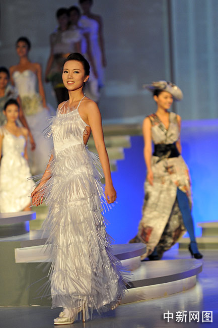 10月31日晚,“2009中華小姐環球大賽”總決賽上,12名入圍總決賽的佳麗身著各式服裝展現曼妙身姿,此外大賽還設計了一套“廢品服裝”呼吁環境保護。中新網記者 金碩 攝