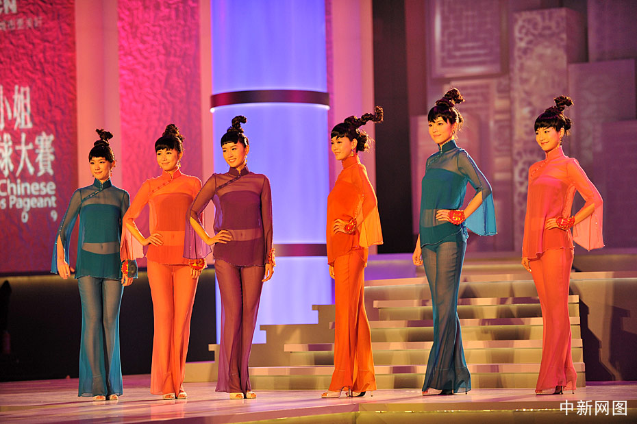 10月31日晚,“2009中華小姐環(huán)球大賽”總決賽上,12名入圍總決賽的佳麗身著各式服裝展現(xiàn)曼妙身姿,此外大賽還設(shè)計(jì)了一套“廢品服裝”呼吁環(huán)境保護(hù)。中新網(wǎng)記者 金碩 攝