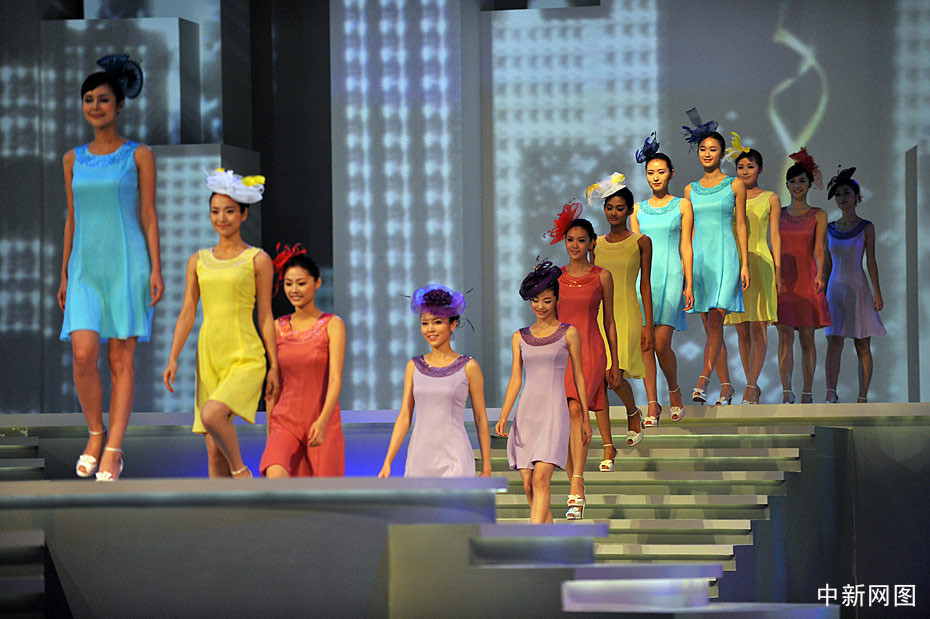 10月31日晚,“2009中華小姐環(huán)球大賽”總決賽上,12名入圍總決賽的佳麗身著各式服裝展現(xiàn)曼妙身姿,此外大賽還設(shè)計了一套“廢品服裝”呼吁環(huán)境保護(hù)。中新網(wǎng)記者 金碩 攝