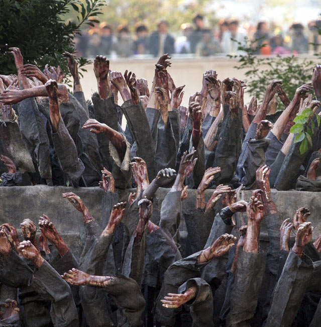 10月31日是西方的“萬圣節”,世界各地的群眾穿著奇異的服飾、打扮鬼魅的造型迎接“鬼節”的到來。圖為在日本東京,人們采用怪異的方式迎接鬼節的到來。