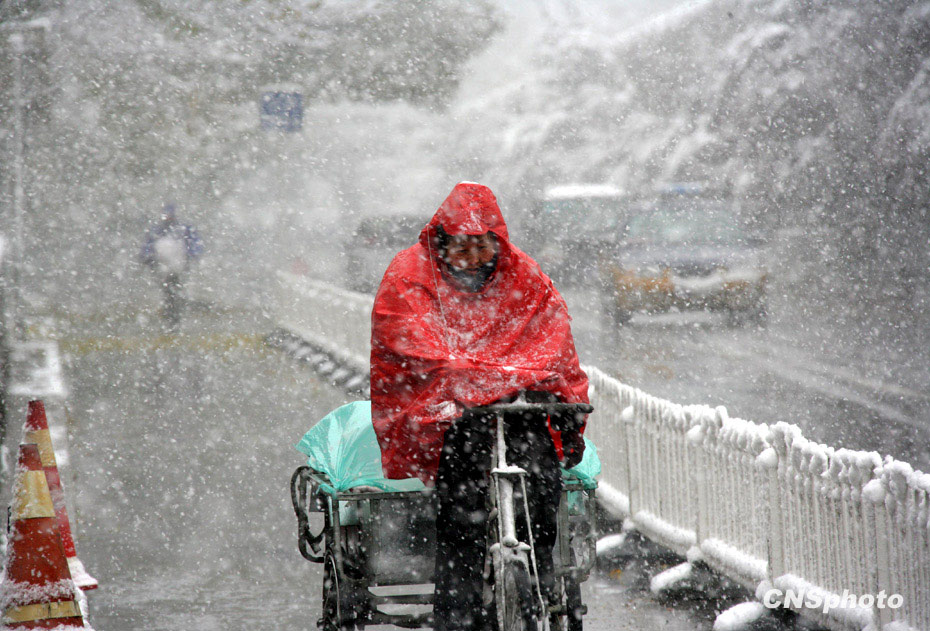 11月1日清晨,北京迎來一場大雪,這么大的降雪量為近幾年來罕見。 中新社發 劉震 攝