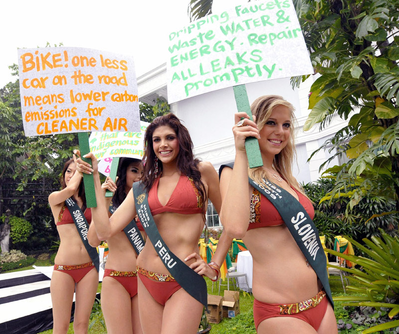2009世界綠色環(huán)保大使小姐決賽在菲律賓進(jìn)行,來(lái)自世界各地的90名佳麗參與角逐。世界綠色環(huán)保大使(地球小姐)評(píng)選,是全世界唯一以“綠色環(huán)保”為主題注冊(cè)的國(guó)際頂級(jí)權(quán)威大賽,由菲律賓總統(tǒng)阿羅約創(chuàng)始。圖片來(lái)源:中國(guó)新聞網(wǎng)