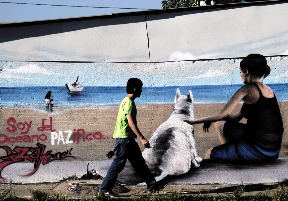 11月15日,智利圣地亞哥近千名藝術家繪制了1800米長的涂鴉墻,打破了吉尼斯世界紀錄。圖片來源:中國新聞網