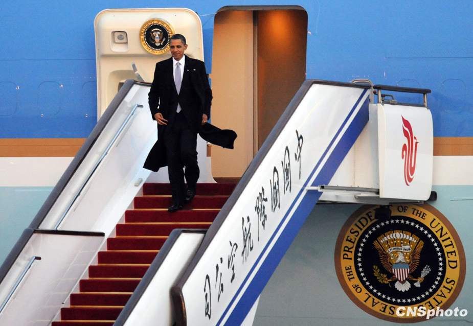 11月16日下午,美國總統(tǒng)奧巴馬乘專機(jī)從上海飛抵北京。中新社記者 廖攀 攝