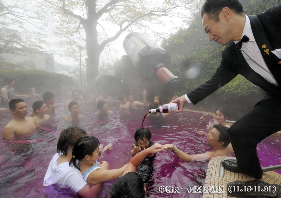 日本神奈川縣箱根小涌園SPA會(huì)所從11月19日開始舉行為期12天的戶外美酒溫泉浴。圖片來源:中國新聞網(wǎng)>>點(diǎn)擊觀看詳細(xì)內(nèi)容