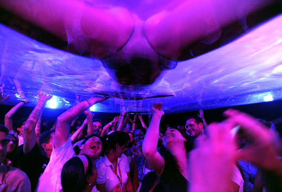 近日,阿根廷演員在加拉加斯舉行了一場名為“蠻力”水下演出,光怪陸離的燈光配合水中的演出吸引了大量觀眾到場觀看。圖片來源:中國新聞網