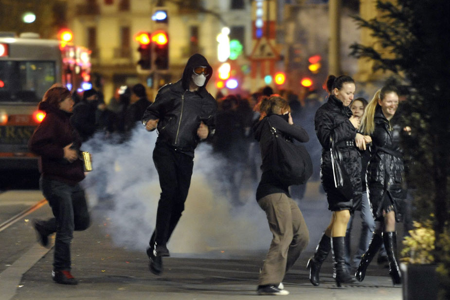 11月28日,在瑞士日內(nèi)瓦發(fā)生的抗議世界貿(mào)易組織的游行活動(dòng)引發(fā)暴力沖突,部分游行者點(diǎn)燃汽車、砸毀商店并與防暴警察發(fā)生沖突。