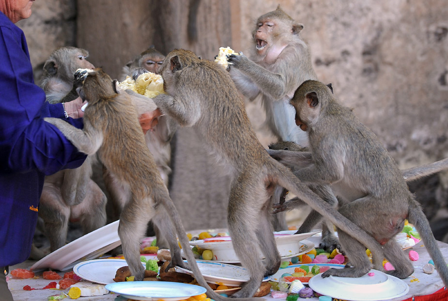 11月29日,泰國迎來了一年一度的傳統(tǒng)節(jié)日“猴節(jié)”。猴子們在每年11月份的最后一個周日迎來自己的節(jié)日。圖片來源:中國新聞網(wǎng)