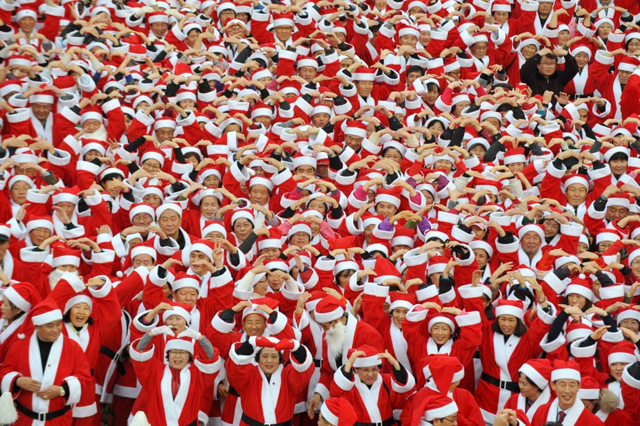 12月1日,韓國(guó)首都首爾市,一千多名“圣誕老人”舉行游行為社會(huì)慈善項(xiàng)目籌款。圖片來源:中國(guó)新聞網(wǎng)